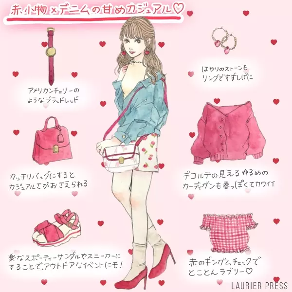 レッド ピンク ラベンダーがこの春の気分 おすすめの着こなしは イラスト ローリエプレス
